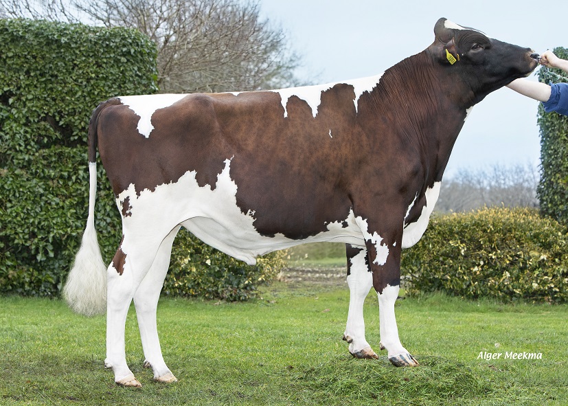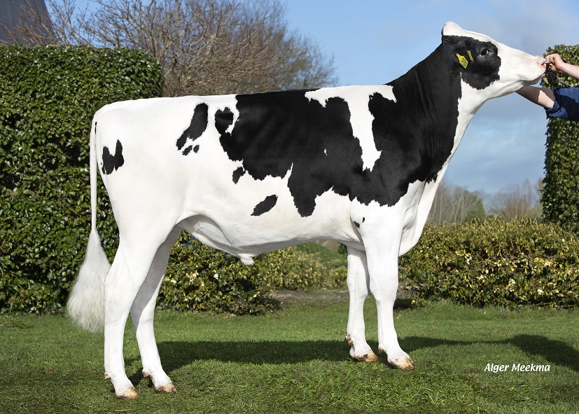 KIK Dumfries (Encourage x Martin, aAa 342, A2A2) comes from the Willem’s-Hoeve Rita family. He is a bull that is without mistakes in his breeding value. In addition, he scores very well for kilograms of protein, transmits positive milking speed, slightly sickled legs, and slightly longer teats. This makes him a bull that can do a good job on many modern Holstein cows. Dumfries is sexed available.