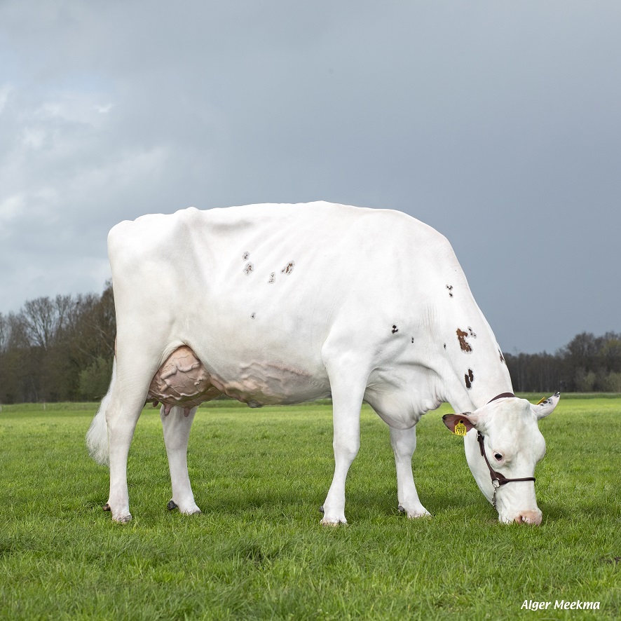 What makes Groenibo Reliever (Anreli x Jetset, aAa 513, A2A2) so popular? First his fantastic cowfamily. His maternal granddam (VG86 Stellandodaughter) for example produced over 105.000 kg’s of milk and is still going strong. As a genomics bull his breeding value was very interesting. Being aAa 513 and A2A2 made him for many farmers an interesting pick. His own robust look made him very attractive too. When the first calves came, it seems he is suitable for heifers(104) and the calves are very vital (105).